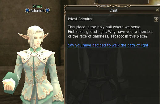 1.Quest začíná u Magister Sidra,která se nachází v Gludiu v Dark Elf Guildu.Musíte získat 2 knihy - Andariel Book a Garmiel Book.